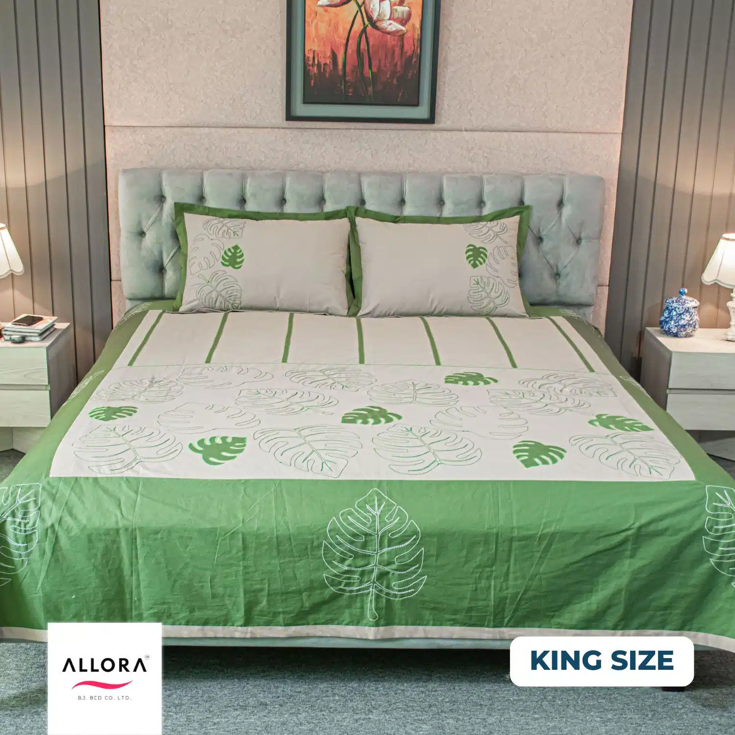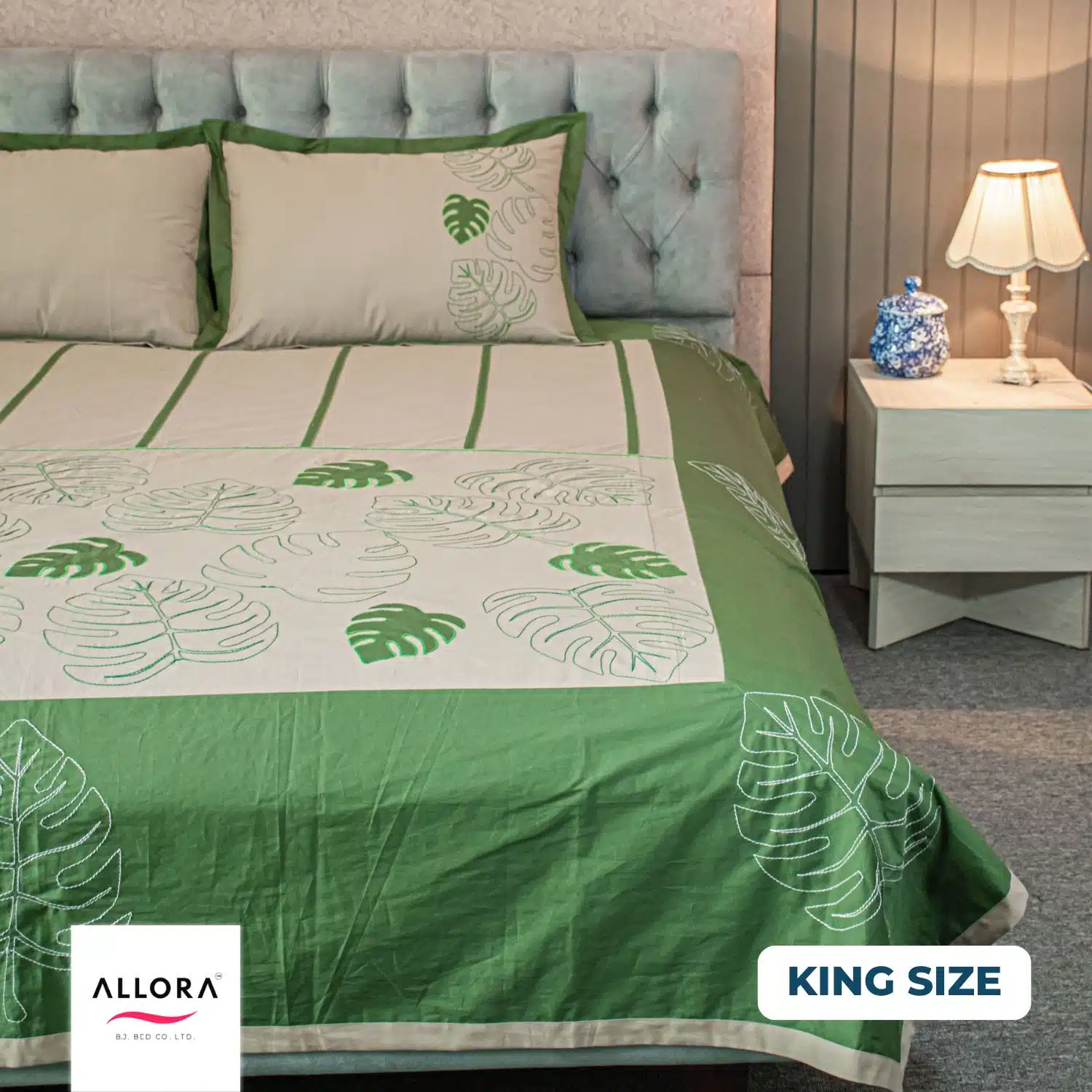 - Emerald Bloom Embroidery Bedsheet