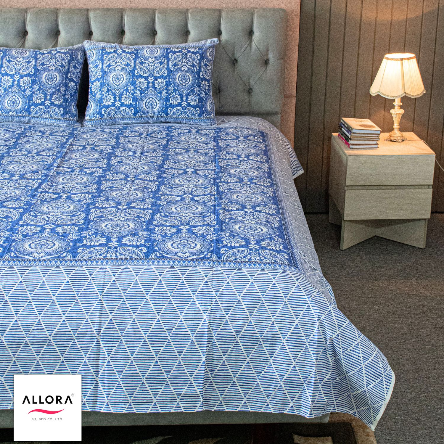 This elegant blue & white printed bedsheet blends timeless patterns with a soothing vibe — perfect for creating a cosy, peaceful home you’ll love coming back to.