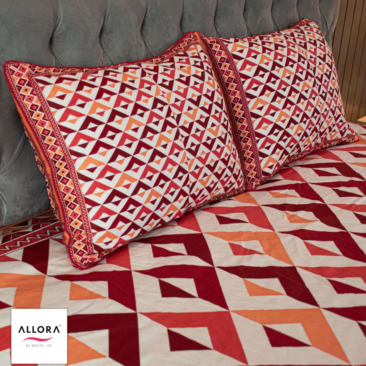 Who said bedsheets can’t be statement pieces? 🔥 This geometric triangle print in maroon is here to steal the spotlight.